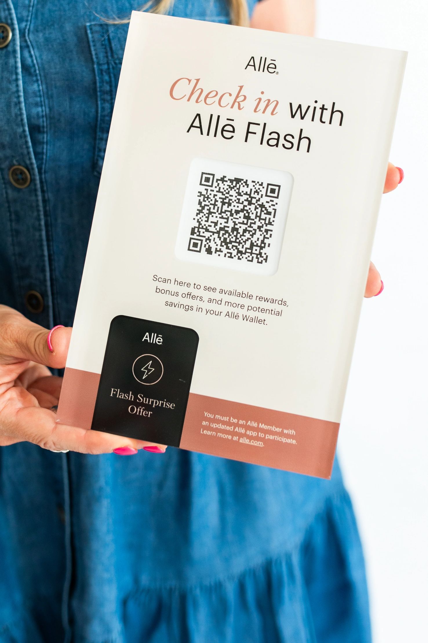 Allē is a free loyalty program that lets you earn points on qualifying treatments and products. Redeem your points for dollars off at checkout and enjoy exclusive offers delivered straight to your Allē Wallet. Scan the Flash QR code in-office for a chance to unlock a bonus offer towards your next treatment!